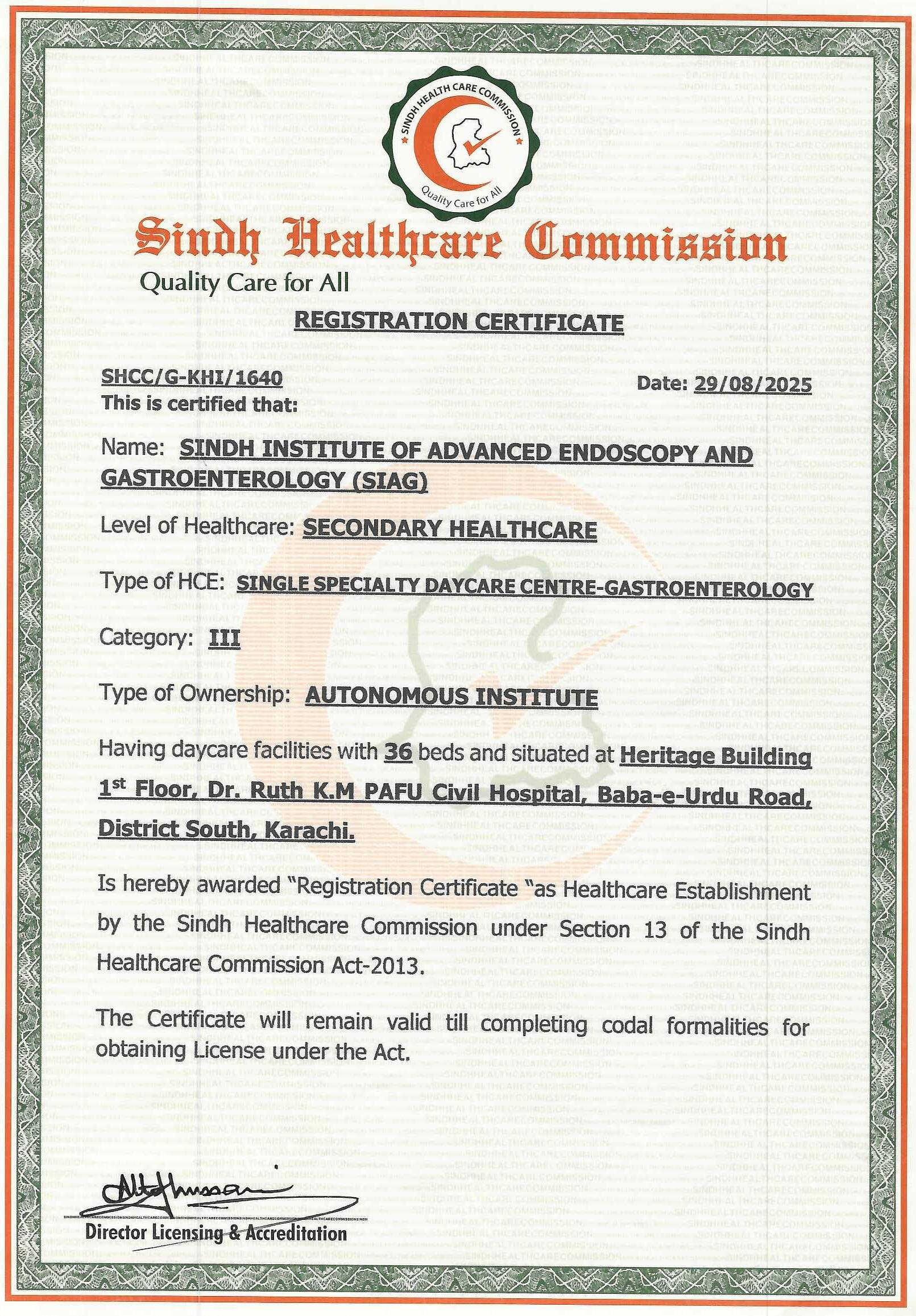 Honorary Consultant and Director of Endoscopy at Civil Hospital, Karachi